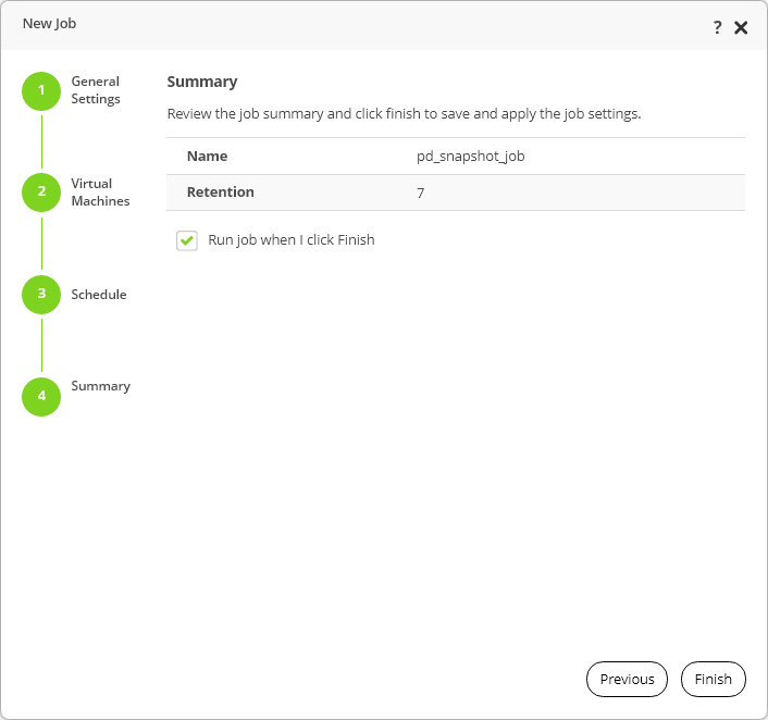 At the Summary step of the wizard, complete the procedure of PD snapshot job configuration.