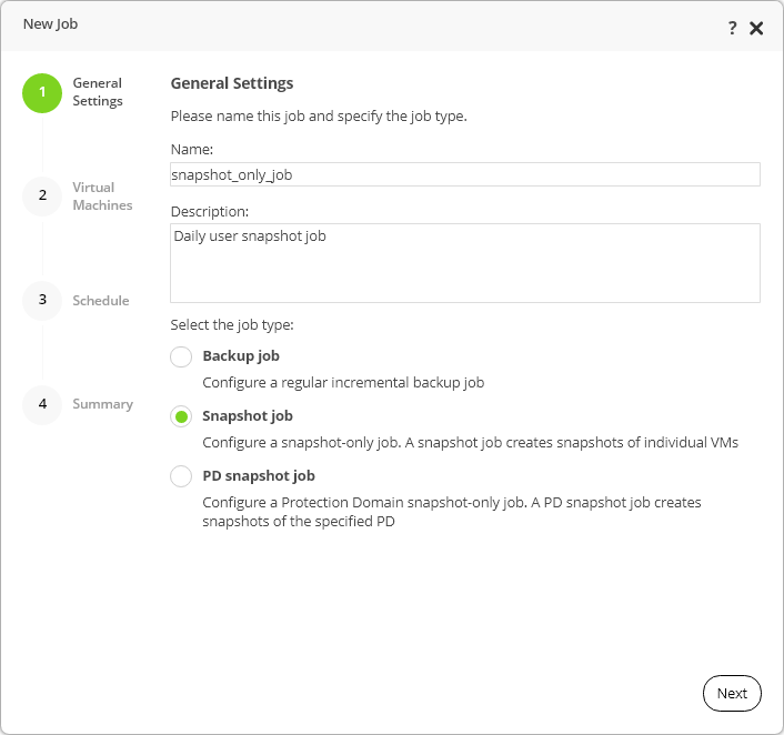 - In the Select the job type field, select Snapshot job.