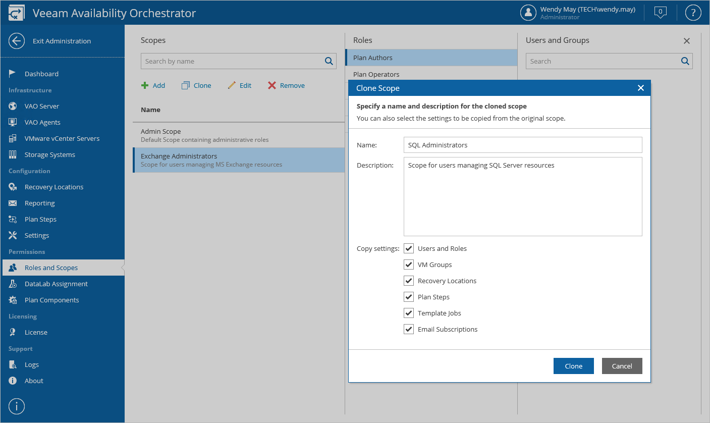 - Click Clone to save the scope.