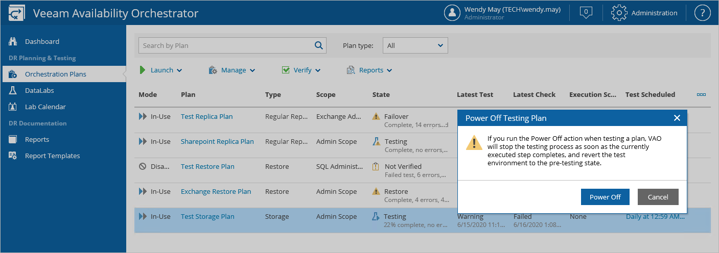 - In the Power Off Testing Plan window, click Power Off to confirm the action.