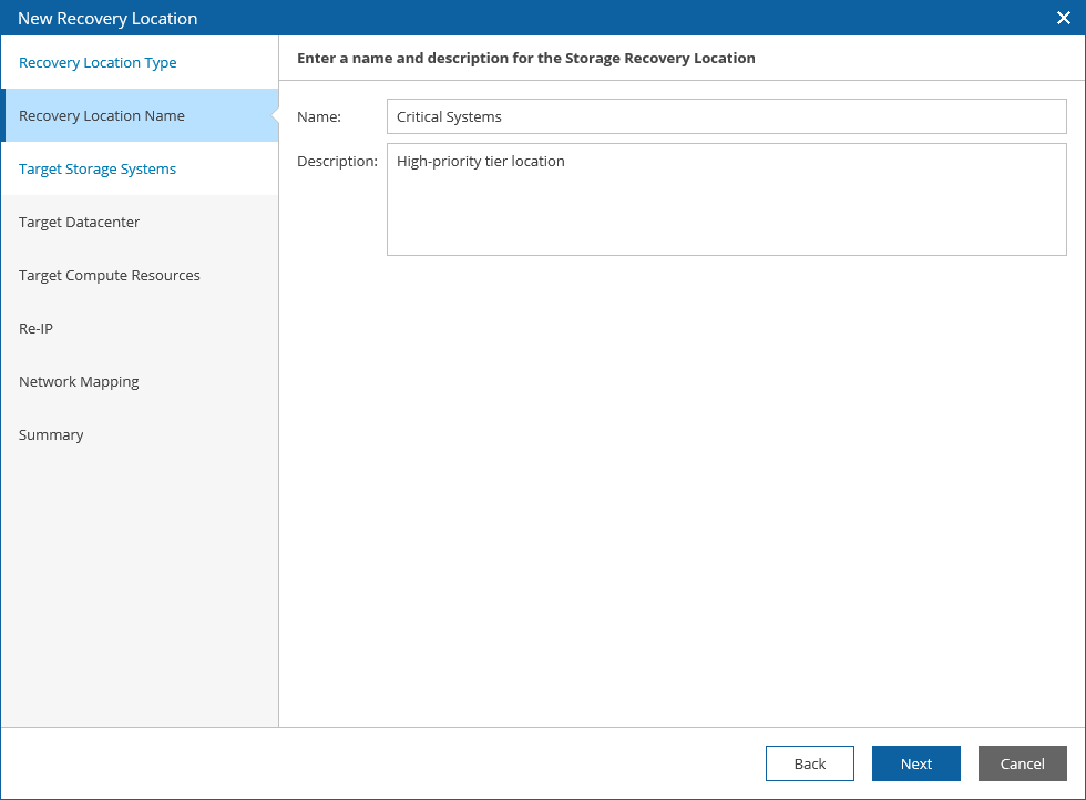 Step 2. Specify Recovery Location Name and Description