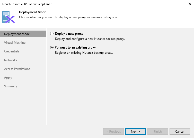 At the Deployment Mode step, select the Connect to an existing proxy option.