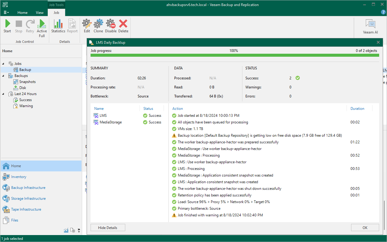 To learn how to analyze the bottleneck statistics, see Veeam Backup & Replication User Guide, section Performance Bottlenecks.