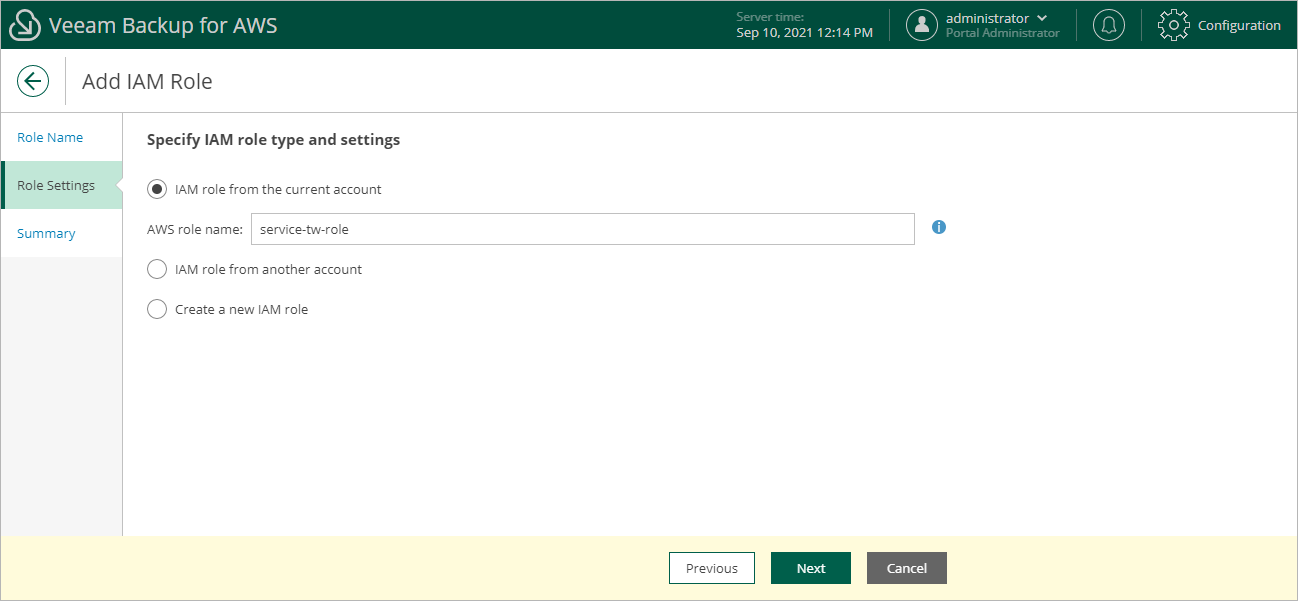 At the Role Settings step of the wizard, use the AWS role name field to enter the IAM role name as specified in AWS.