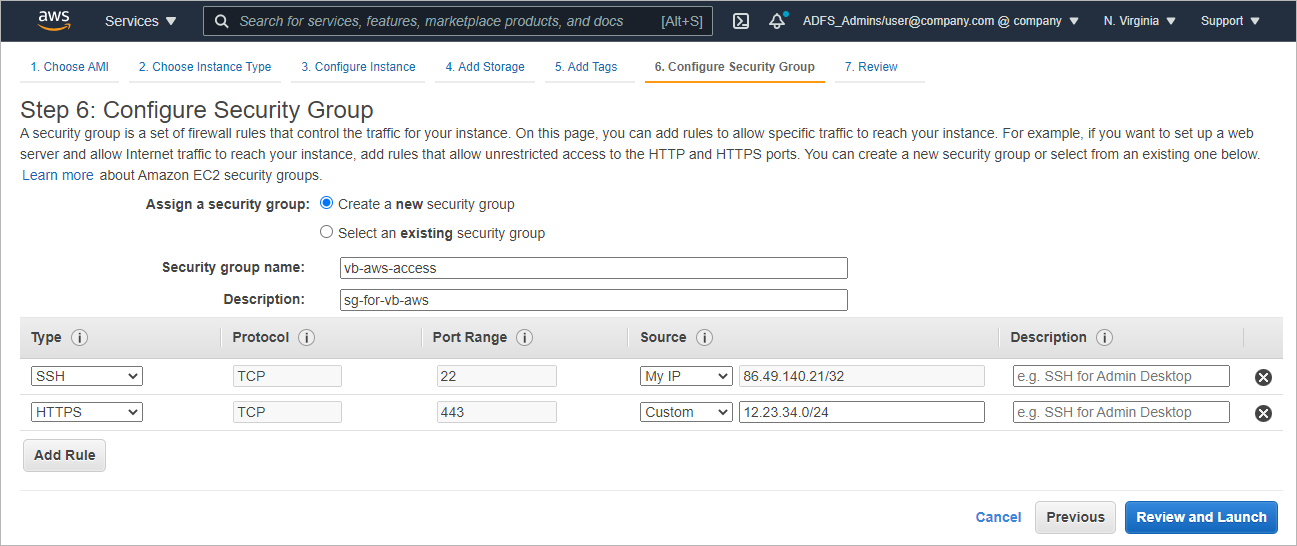 Make sure the IPv4 address of the local machine from which you plan to access Veeam Backup for AWS lies within the specified IPv4 ranges.