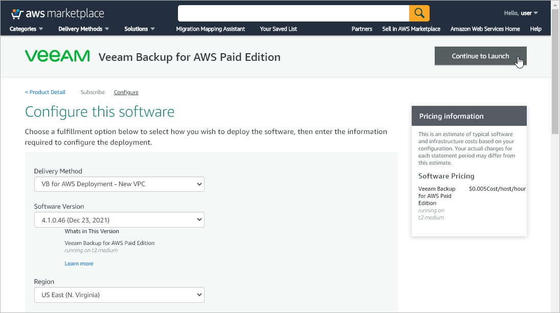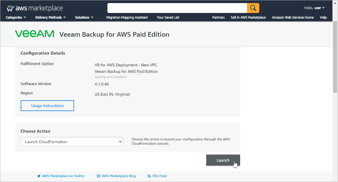 To install Veeam Backup for AWS from AWS Marketplace: