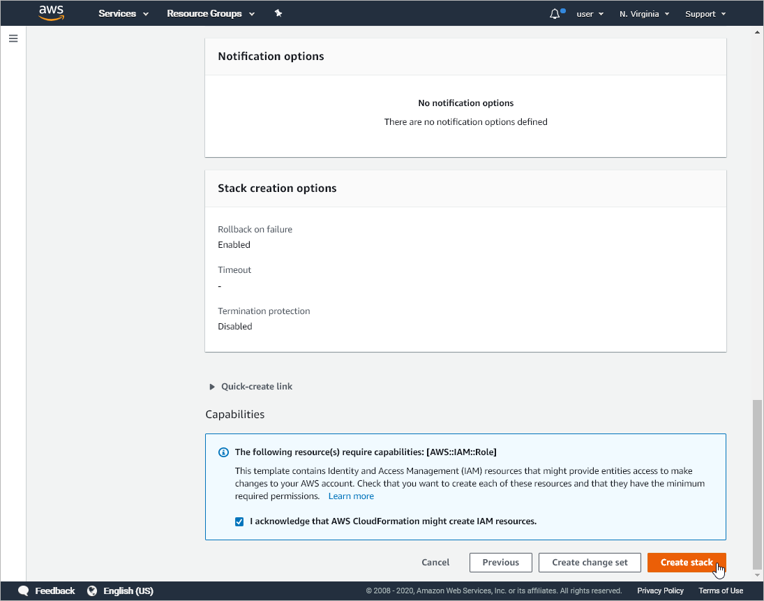- Click Create stack.