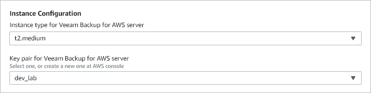 For a key pair to be displayed in the Key pair for Veeam Backup for AWS server list, it must be created in the Amazon EC2 console. To learn how to create key pairs, see AWS Documentation.