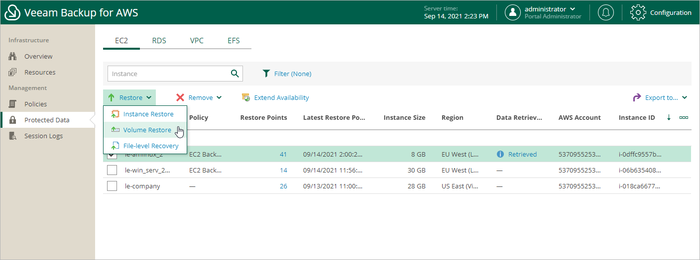 1. Navigate to Protected Data > EC2.