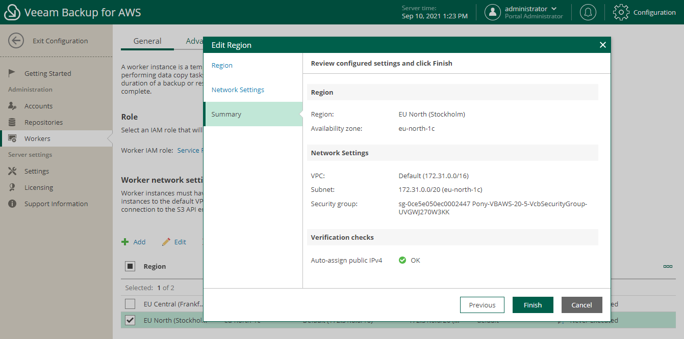 You can edit settings configured for the AWS Regions in which Veeam Backup for AWS launches worker instances: