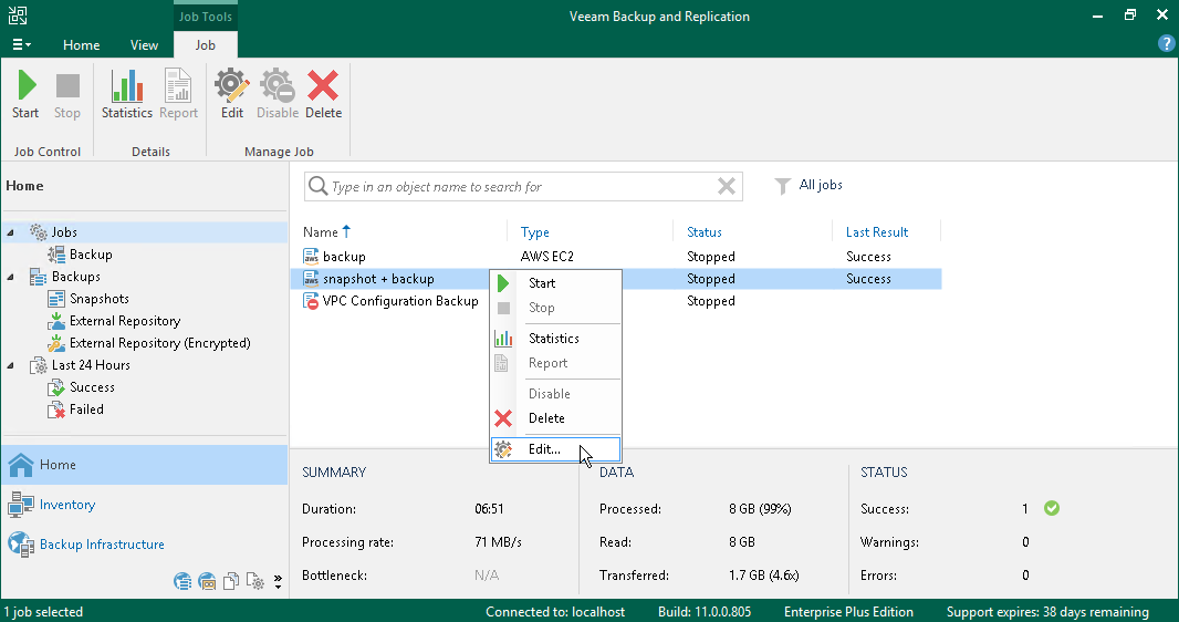 After you install AWS Plug-in for Veeam Backup & Replication, you can edit settings of backup policies created in Veeam Backup for AWS. For example, you can add more EC2 instances to an EC2 backup policy or change the backup policy description.