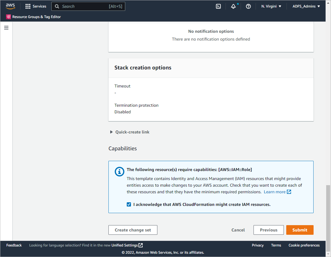 - Select the I acknowledge that AWS CloudFormation might create IAM resources check box.