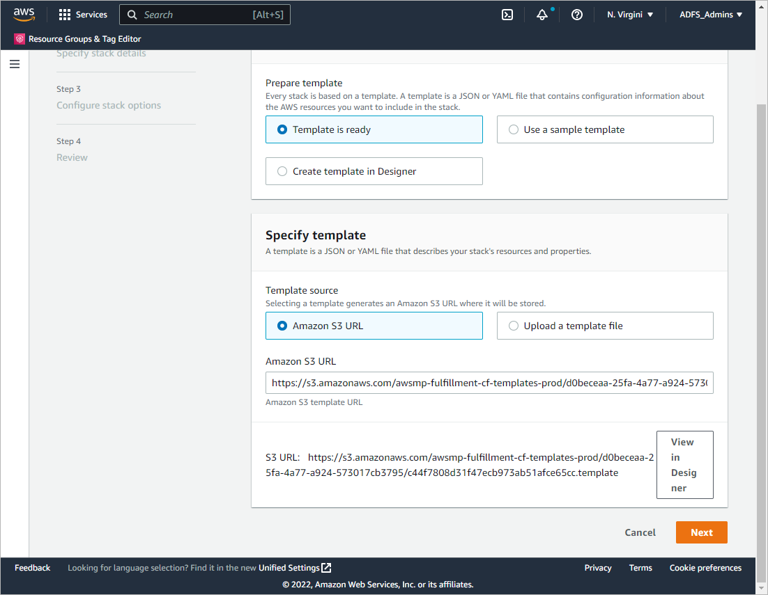 In the Create stack wizard, you will create a stack for Veeam Backup for AWS.