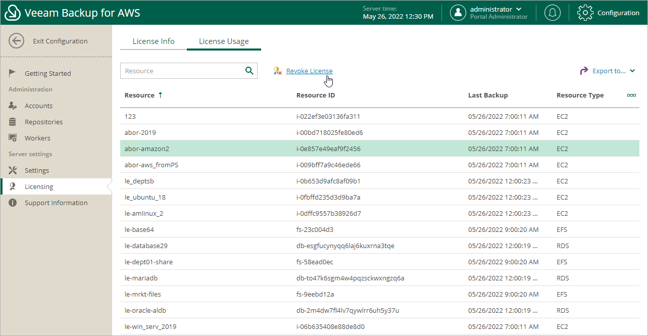 By default, Veeam Backup for AWS automatically revokes a license unit from a protected instance if no new restore points have been created by the backup policy during the past 31 days. However, you can manually revoke license units from protected instances — this can be helpful, for example, if you remove a number of instances from a backup policy and do not want to protect them anymore.