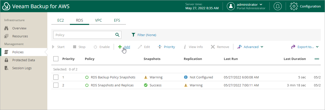 This is an archive version of the document. To get the most up-to-date information, see the current version. Step 1. Launch Add RDS Policy Wizard To launch the Add RDS Policy wizard, complete the following steps.Navigate to Policies > RDS.Click Add.