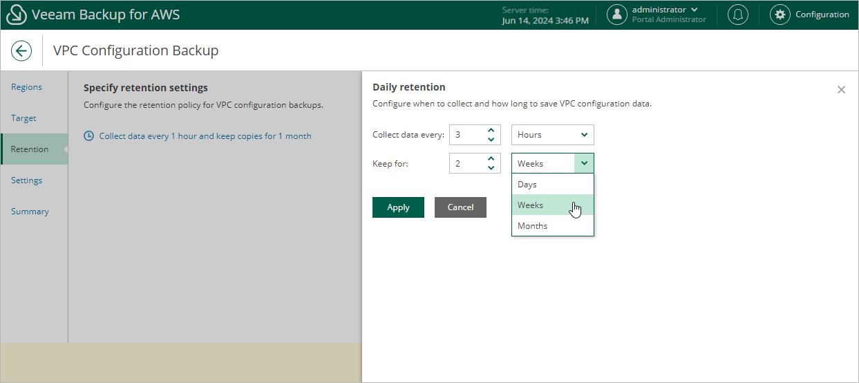 At the Retention step of the wizard, specify retention settings for VPC configuration backups: