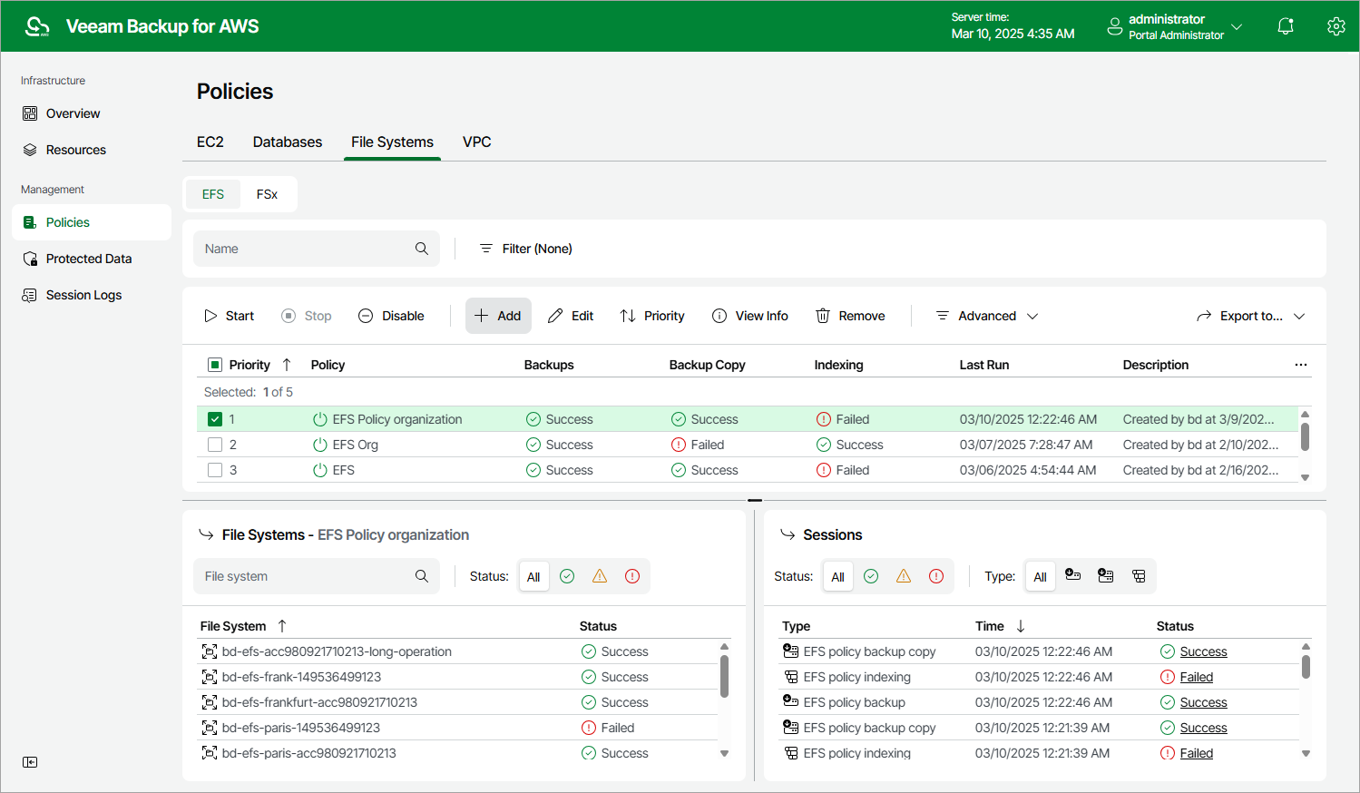 This is an archive version of the document. To get the most up-to-date information, see the current version. Step 1. Launch Add EFS Policy Wizard To launch the Add EFS Policy wizard, do the following:Navigate to Policies > File Systems > EFS.Click Add.