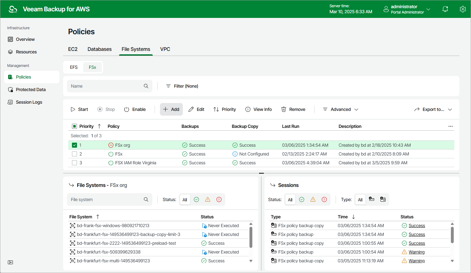 This is an archive version of the document. To get the most up-to-date information, see the current version. Step 1. Launch Add FSx Policy Wizard To launch the Add FSx Policy wizard, do the following:Navigate to Policies > File Systems > FSx.Click Add.