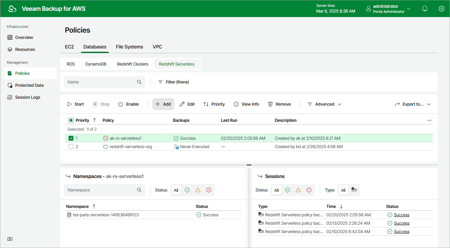 This is an archive version of the document. To get the most up-to-date information, see the current version. Step 1. Launch Add Redshift Serverless Policy Wizard To launch the Add Redshift Serverless Policy wizard, do the following:Navigate to Policies > Databases > Redshift Serverless.Click Add.