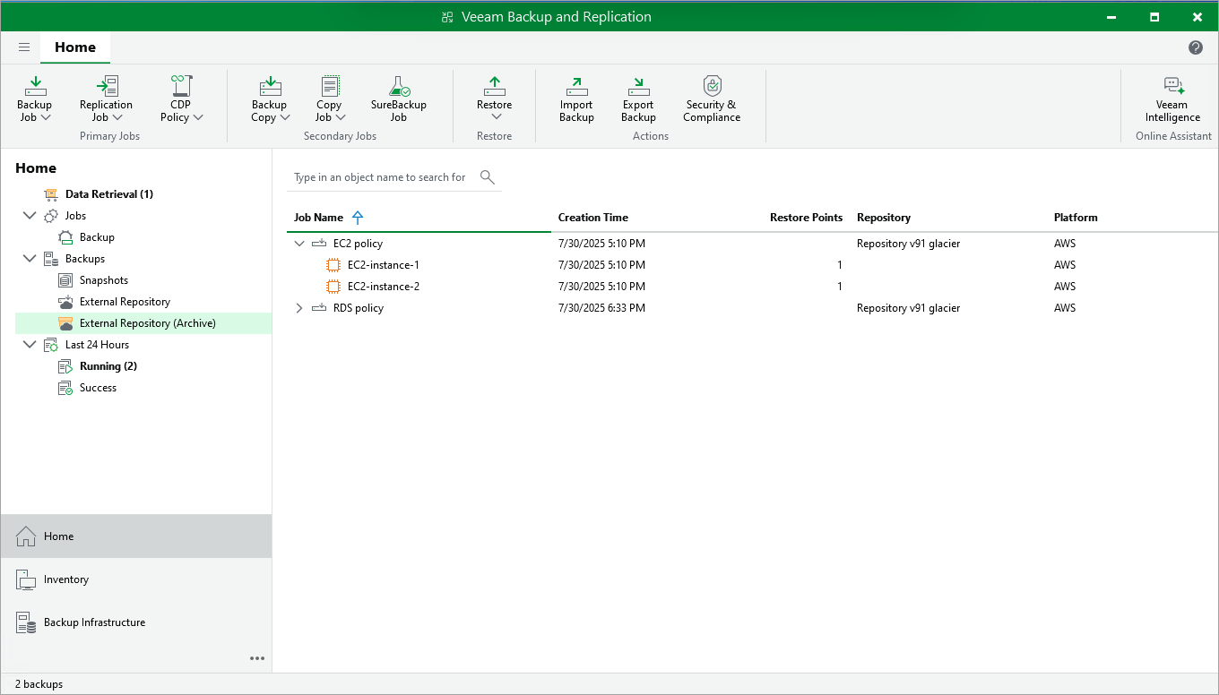 Before you enable this mode, it is recommended that you check whether the IAM role specified to access the archive backup repository has all the permissions required to perform data retrieval operations. For more information, see Managing Backup Repositories.