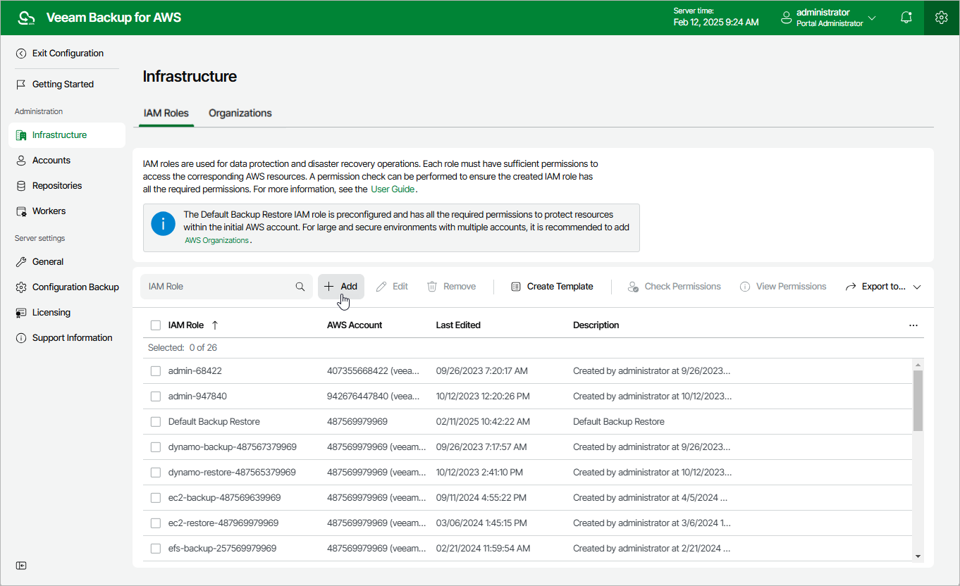 This is an archive version of the document. To get the most up-to-date information, see the current version. Step 1. Launch Add IAM Role Wizard To launch the Add IAM Role wizard, do the following:Switch to the Configuration page.Navigate to Infrastructure > IAM Roles.Click Add.