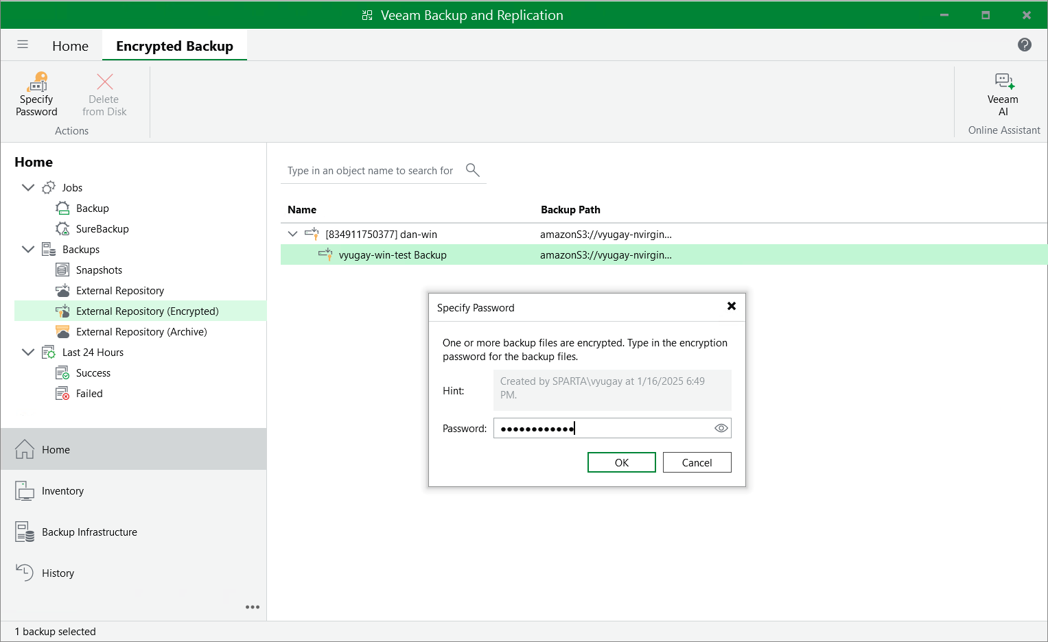 Alternatively, you can right-click the necessary backup chain and select Specify password.