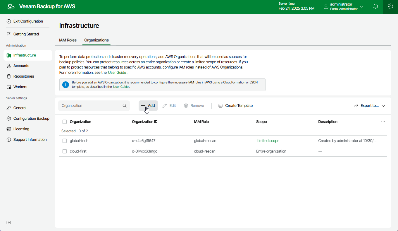This is an archive version of the document. To get the most up-to-date information, see the current version. Step 1. Launch Add Organization Wizard To launch the Add Organization wizard, do the following:Switch to the Configuration page.Navigate to Infrastructure > Organizations.Click Add.