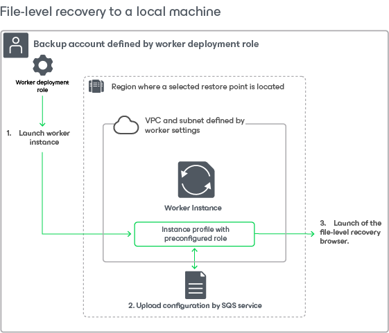 - To restore files and folders from an image-level backup, Veeam Backup for AWS deploys the worker instance in the AWS Region where the backup repository with backed-up data resides.
