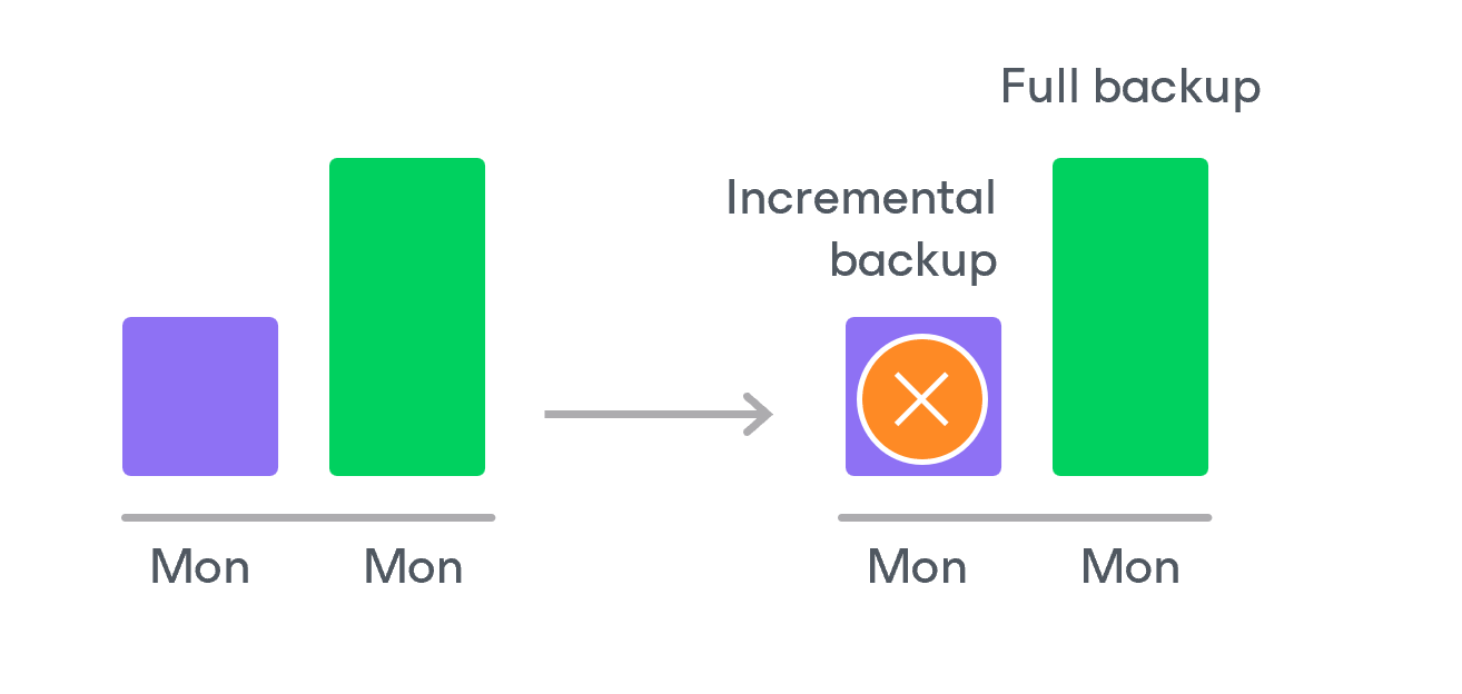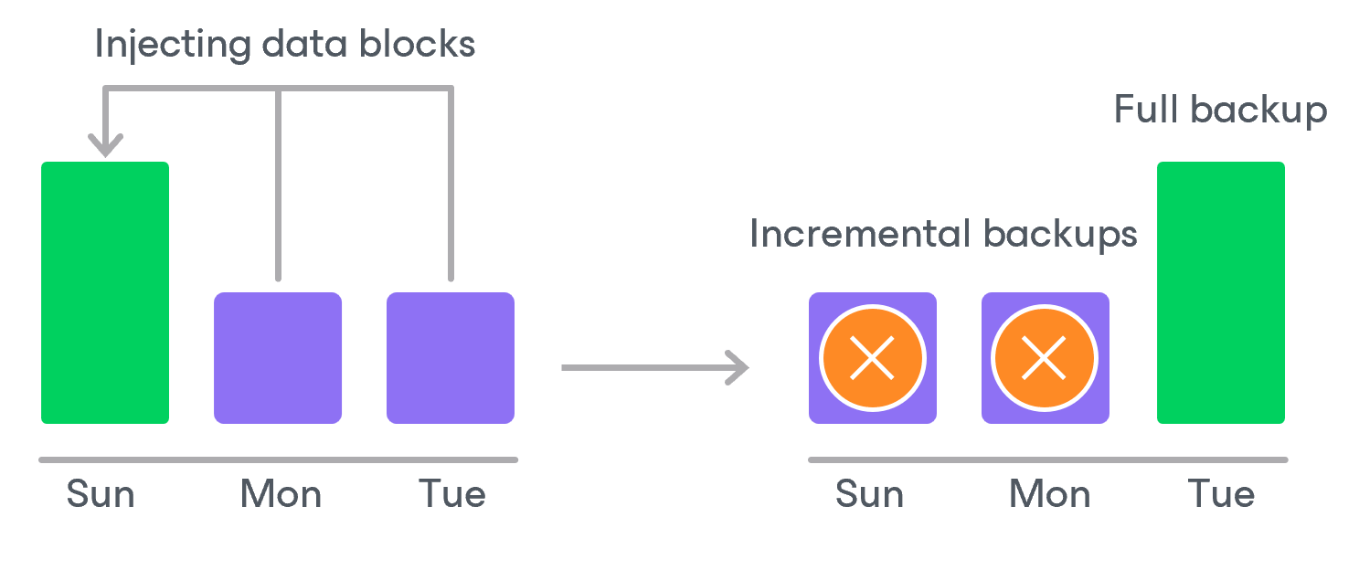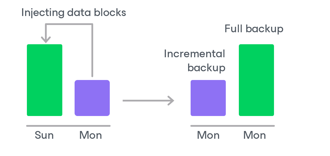 - Veeam Backup for AWS rebuilds the full backup to include in it data of the incremental backup that follows the full backup. To do that, Veeam Backup for AWS injects into the full backup data blocks from the earliest incremental backup in the chain. This way, a full backup ‘moves’ forward in the backup chain.