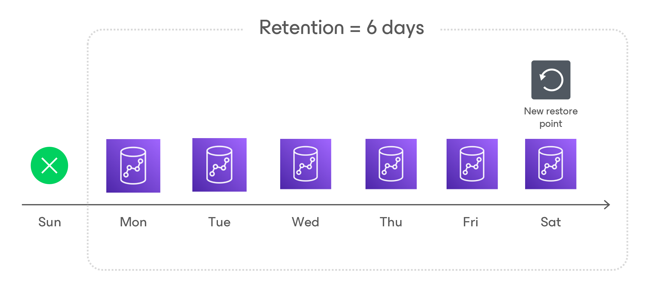 For Redshift backups, Veeam Backup for AWS retains restore points for the period of time specified in backup scheduling settings.
