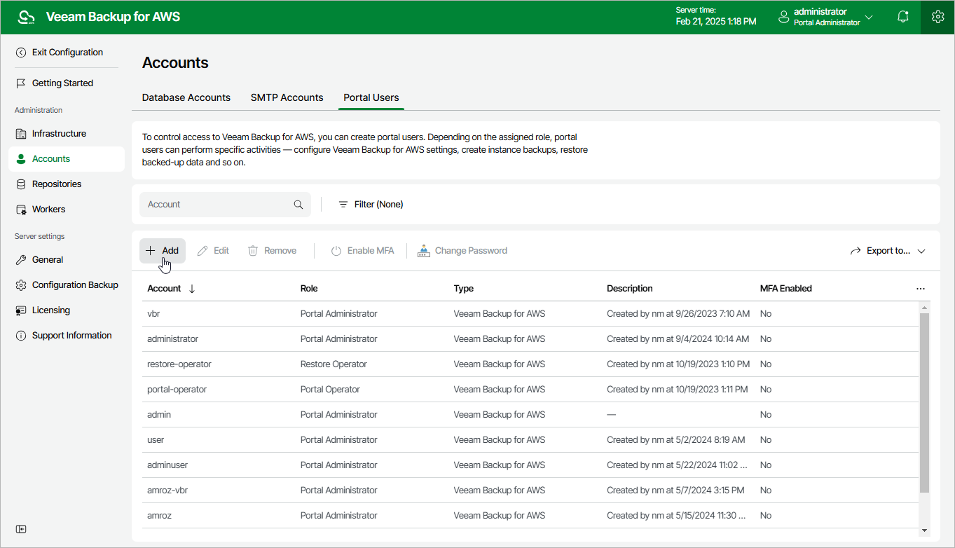 This is an archive version of the document. To get the most up-to-date information, see the current version. Step 1. Launch Add Account Wizard To launch the Add Portal Account wizard, do the following:Switch to the Configuration page.Navigate to Accounts > Portal Users.Click Add.