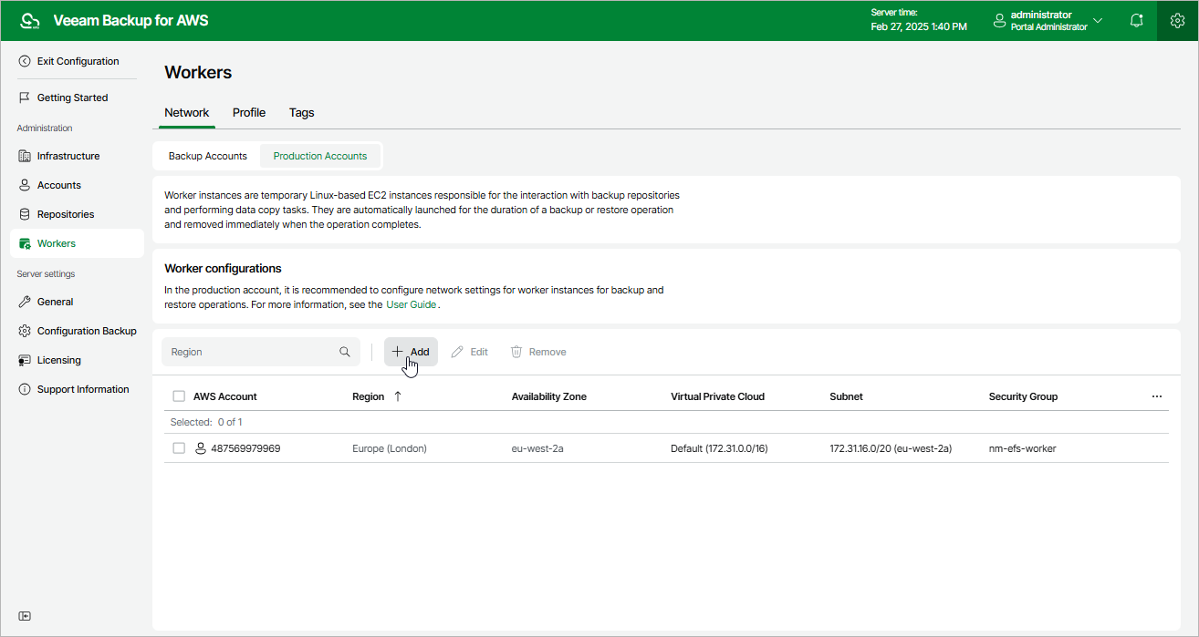 This is an archive version of the document. To get the most up-to-date information, see the current version. Step 1. Launch Add Worker Configuration Wizard To launch the Add Worker Configuration wizard, do the following:Switch to the Configuration page.Navigate to Workers > Network.Switch to the Production Accounts tab.In the Worker configurations section, click Add.