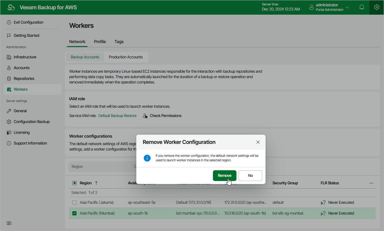 To remove a worker configuration from Veeam Backup for AWS, do the following: