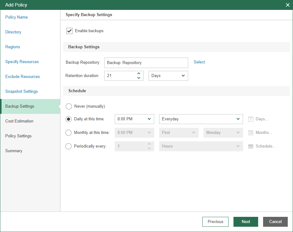 Step 8. Specify Backup Settings