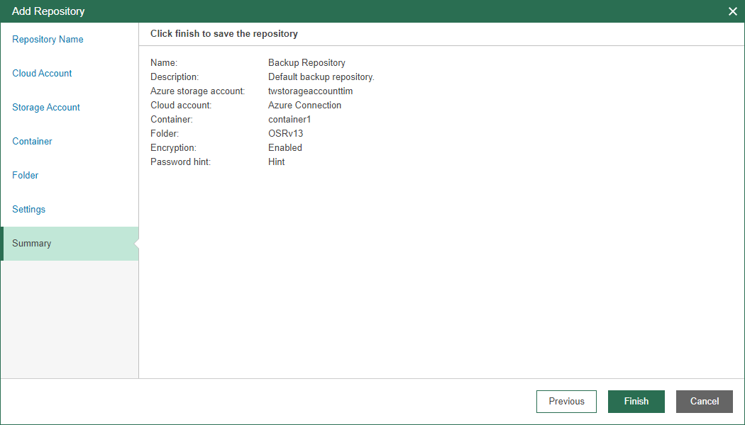 At the Summary step of the wizard, review summary information and click Finish.