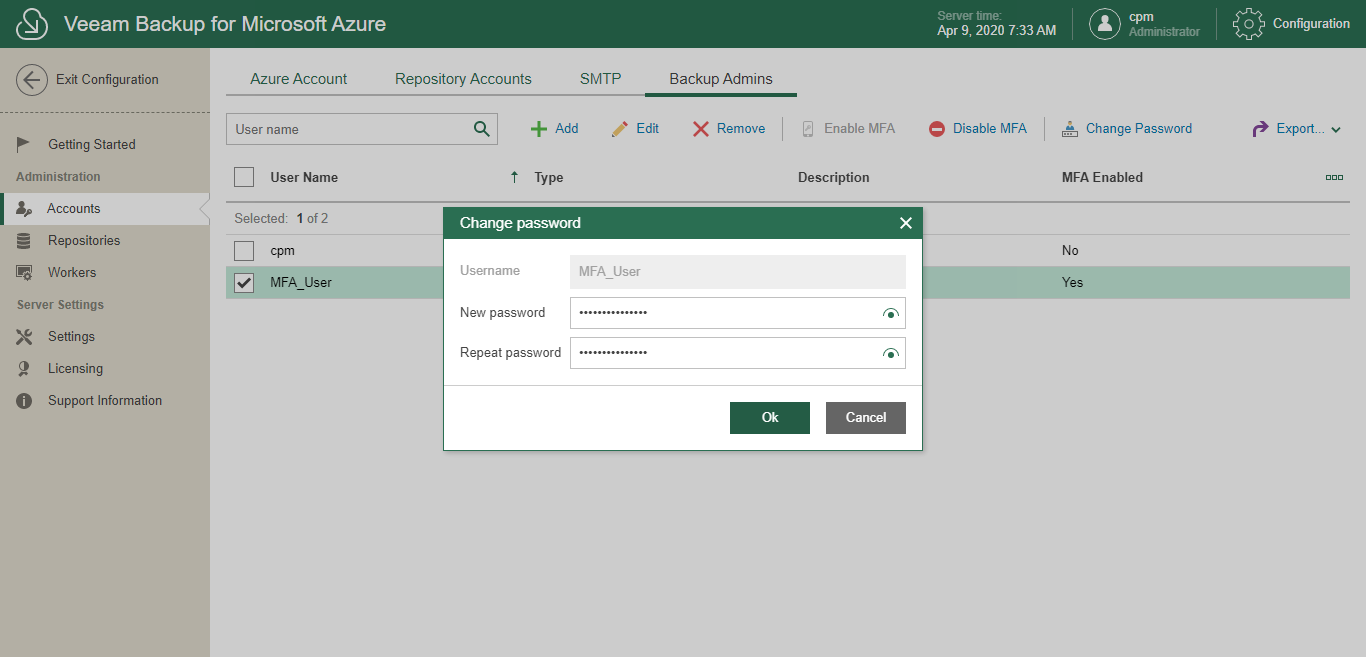 Veeam Backup for Microsoft Azure will display the Change Password window.