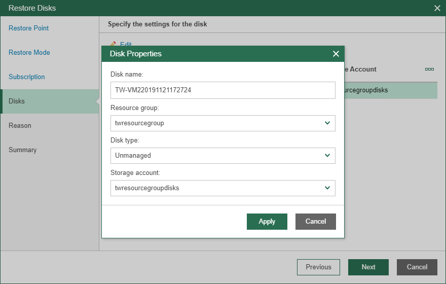 Veeam Backup for Microsoft Azure will display the Disk Properties window.