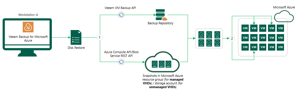 When you run a disk restore, Veeam Backup for Microsoft Azure does the following: