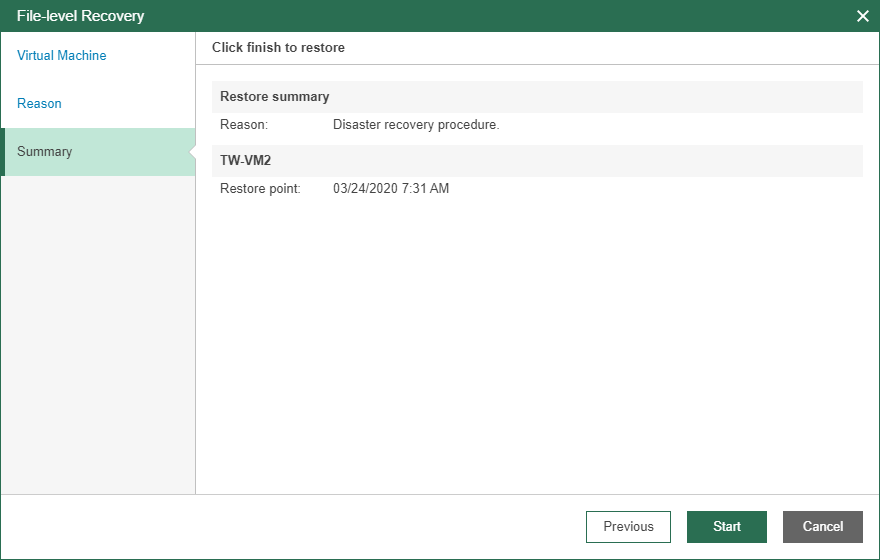 After you click Start, Veeam Backup for Microsoft Azure displays the File-Level Recovery window. In this window, you can wait until the link to the File Level Recovery for Veeam Backup browser is generated and then click this link to open the browser. You can also close the File-Level Recovery window and open the File Level Recovery for Veeam Backup browser later, as described in Opening File Level Recovery Browser.