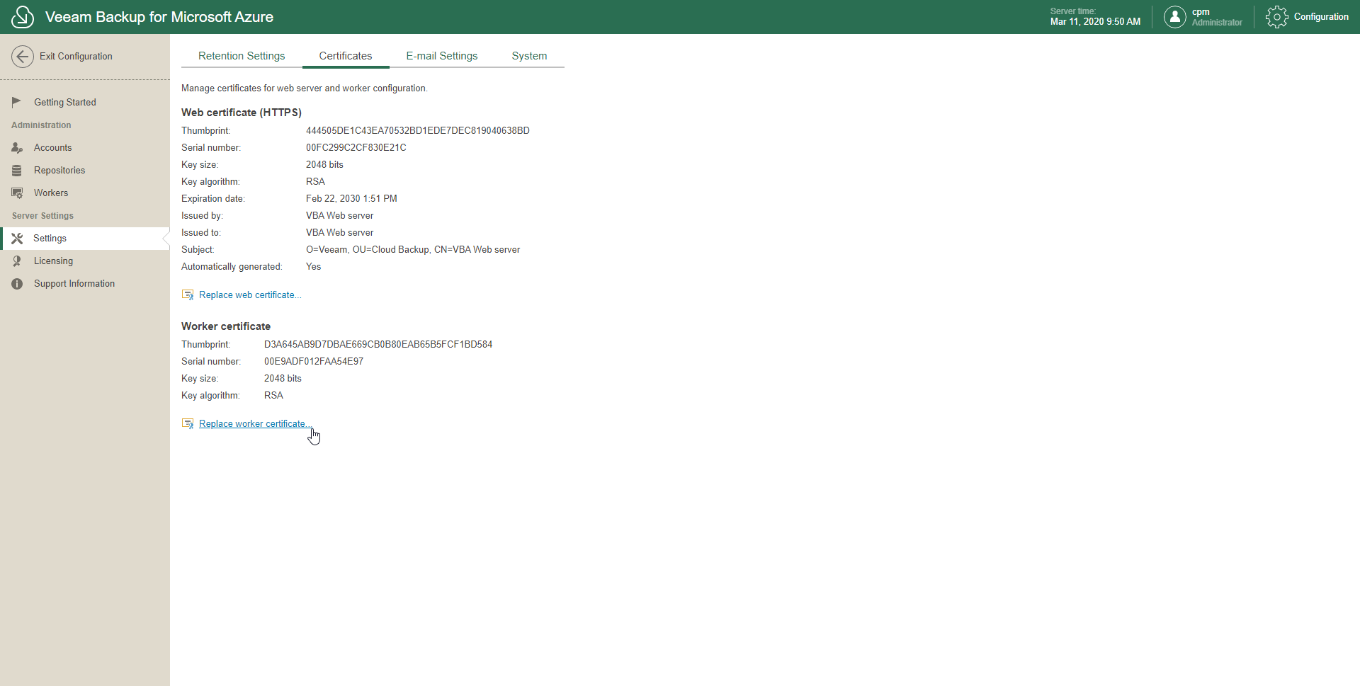 - Click Replace Worker Certificate.