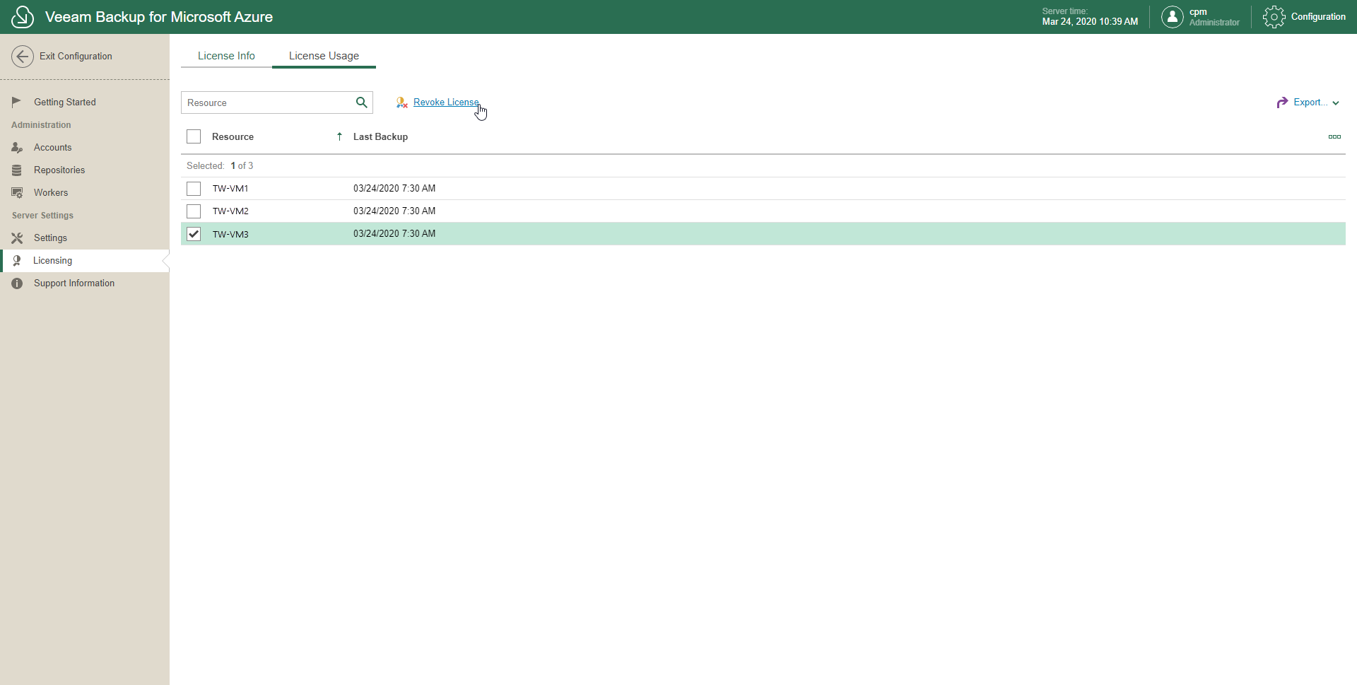 Veeam Backup for Microsoft Azure automatically removes a license unit from a protected Microsoft Azure VM if no new restore point has been created for it within 31 days. However, you can revoke license units from protected Microsoft Azure VMs manually. Revoking license units can be helpful, for example, if you removed some Microsoft Azure VMs from a backup policy and do not want to protect them anymore.