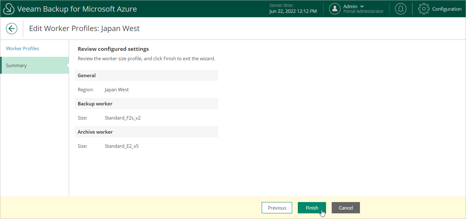 For each set of worker profiles created for an Azure region, you can modify settings specified while creating the profile set: