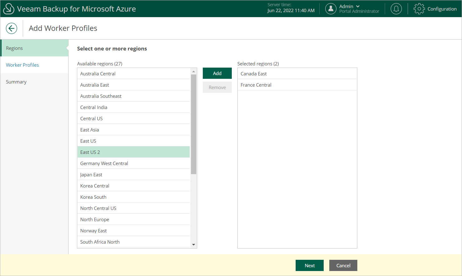 This is an archive version of the document. To get the most up-to-date information, see the current version. Step 2. Choose Regions At the Regions step of the wizard, select regions for which you want to specify worker profiles.