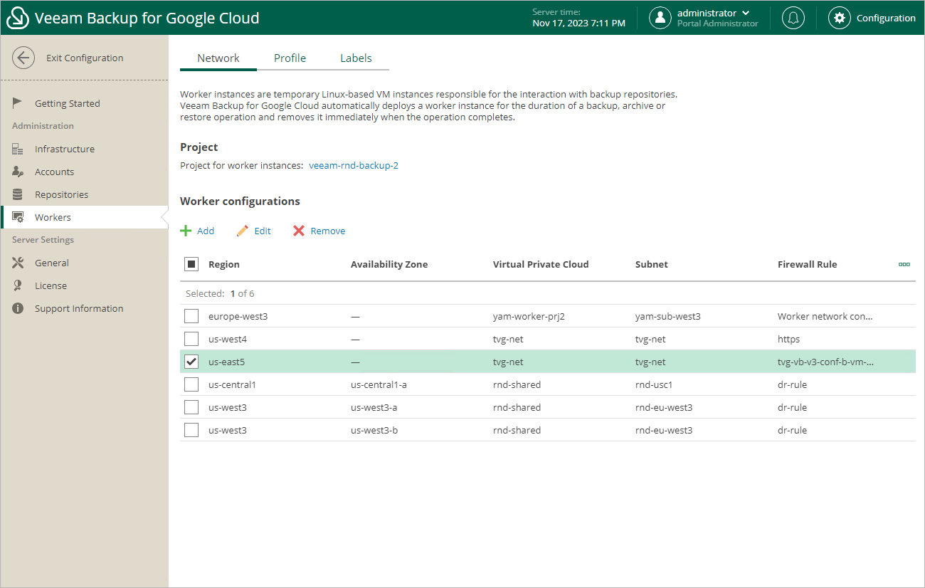 To remove a worker configuration from Veeam Backup for Google Cloud, do the following: