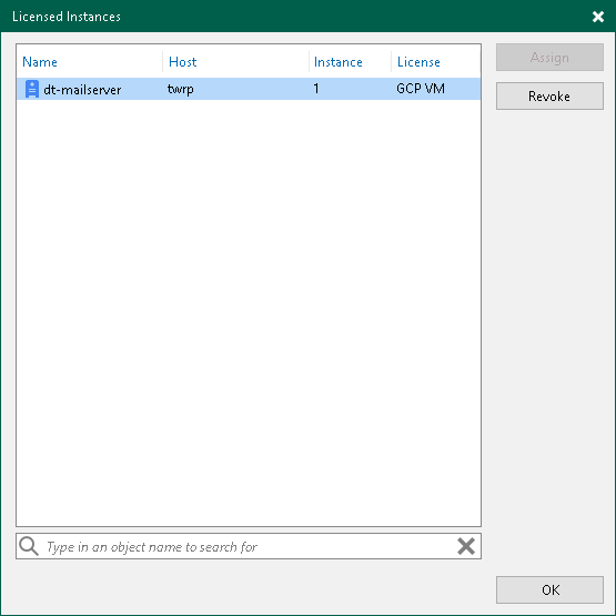 - In the Licensed Instances window, select a protected instance and click Revoke. Veeam Backup & Replication will revoke a license unit from the selected instance.