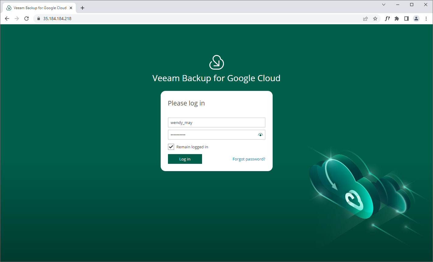- In a web browser, navigate to the Veeam Backup for Google Cloud web address.