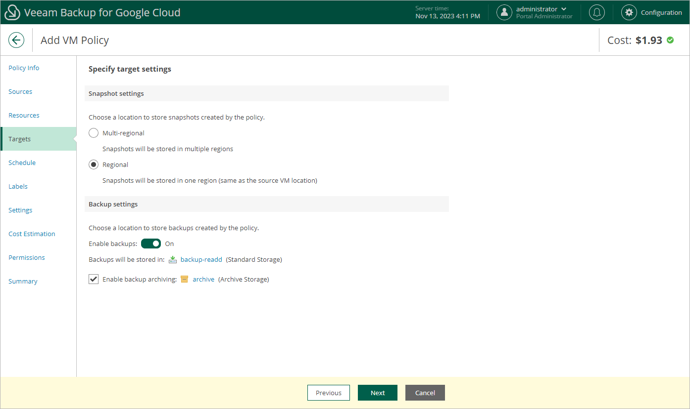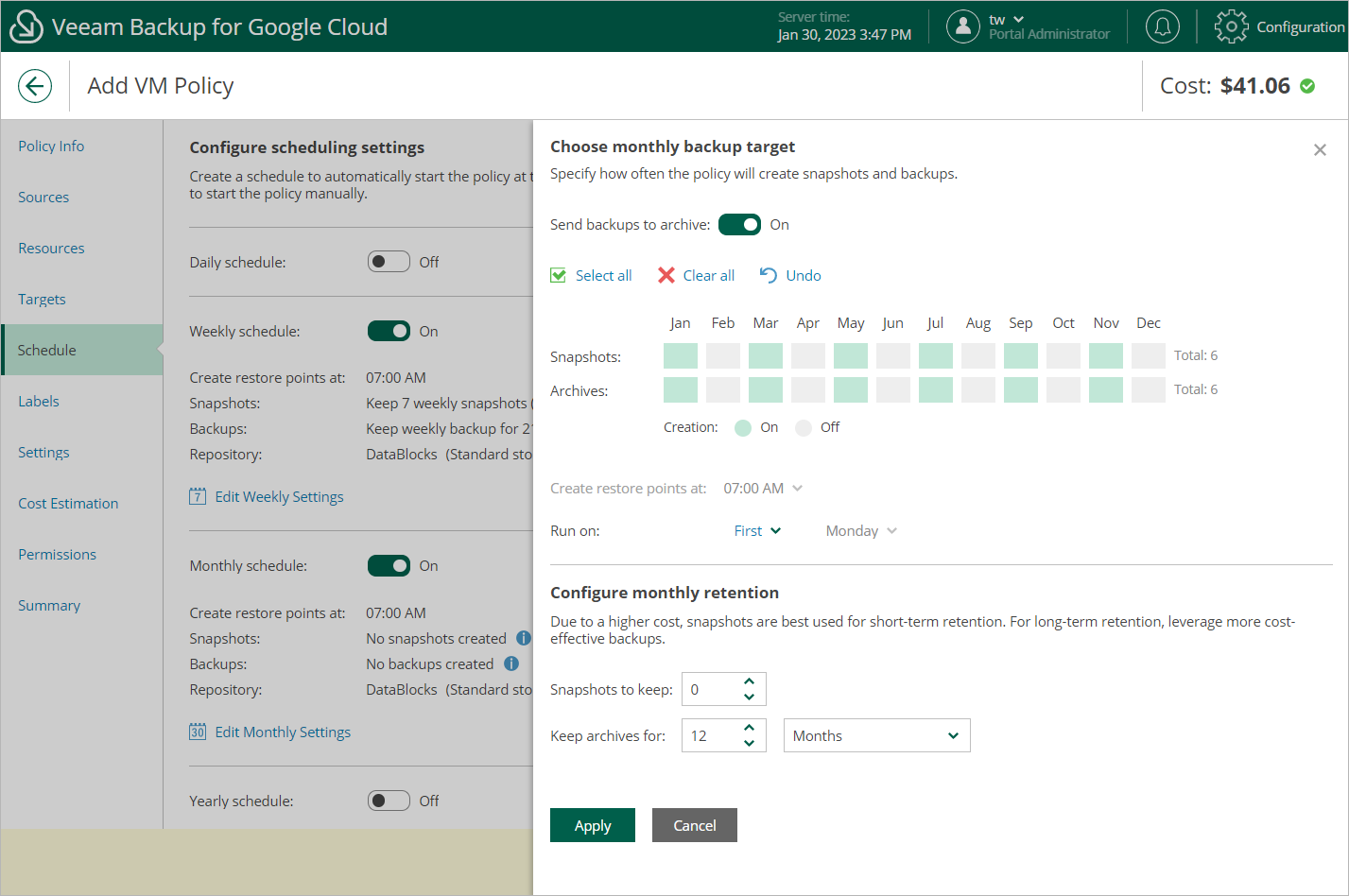 Veeam Backup for Google Cloud will propagate these settings to the archive schedule (which is the monthly schedule in our example).