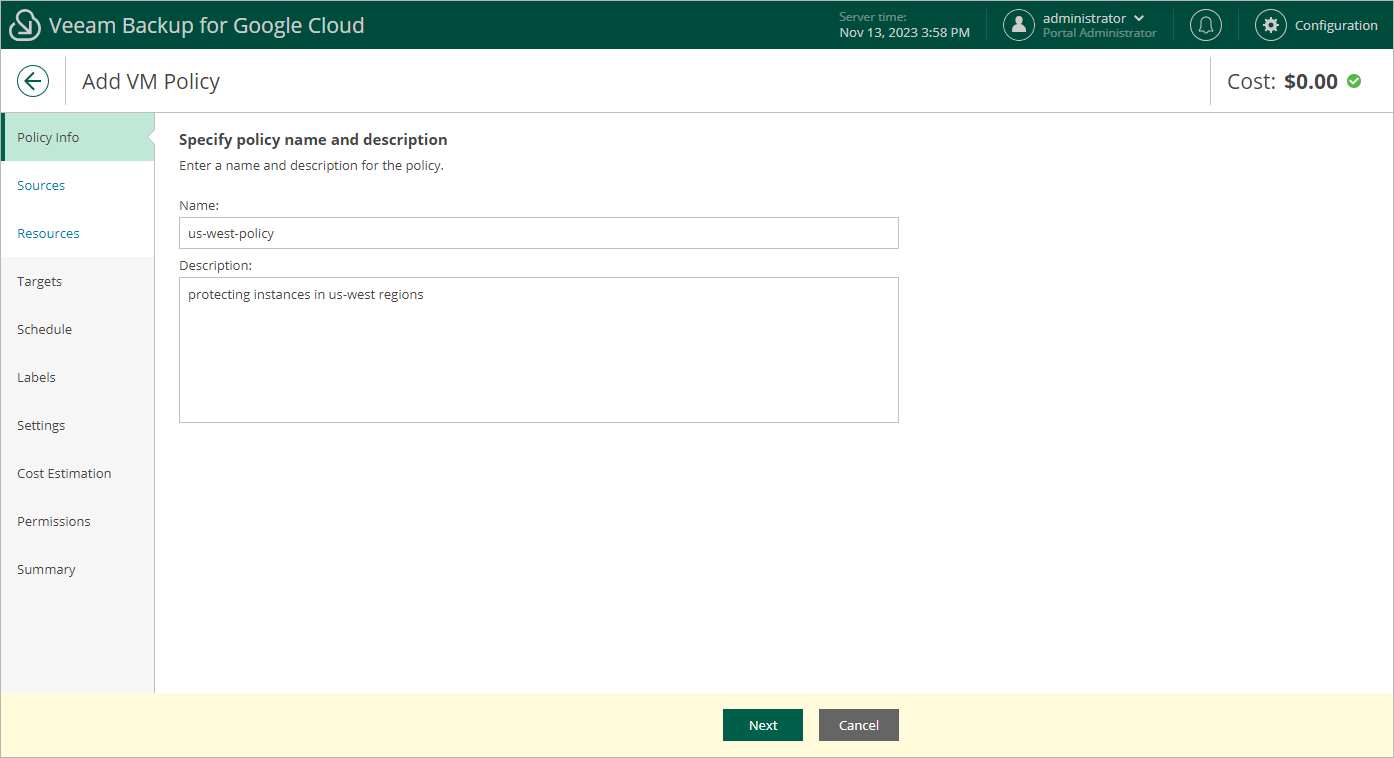 Step 2. Specify Backup Policy Name and Description