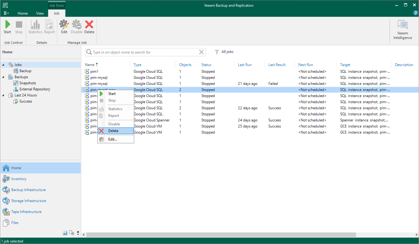 Veeam Backup & Replication allows you to permanently delete backup policies created by Veeam Backup for Google Cloud: