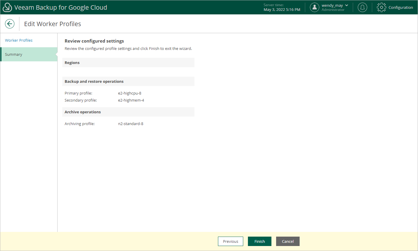 For each set of worker profiles created for a Goggle Cloud region, you can modify settings specified while creating the profile set: